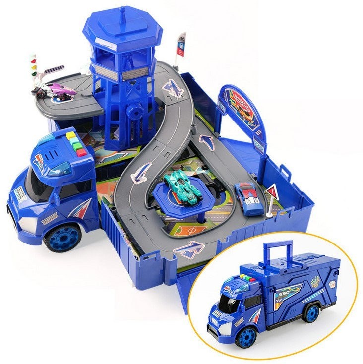Полицейский грузовик 2в1 с площадкой и машинками, со световыми и звуковыми эффектами