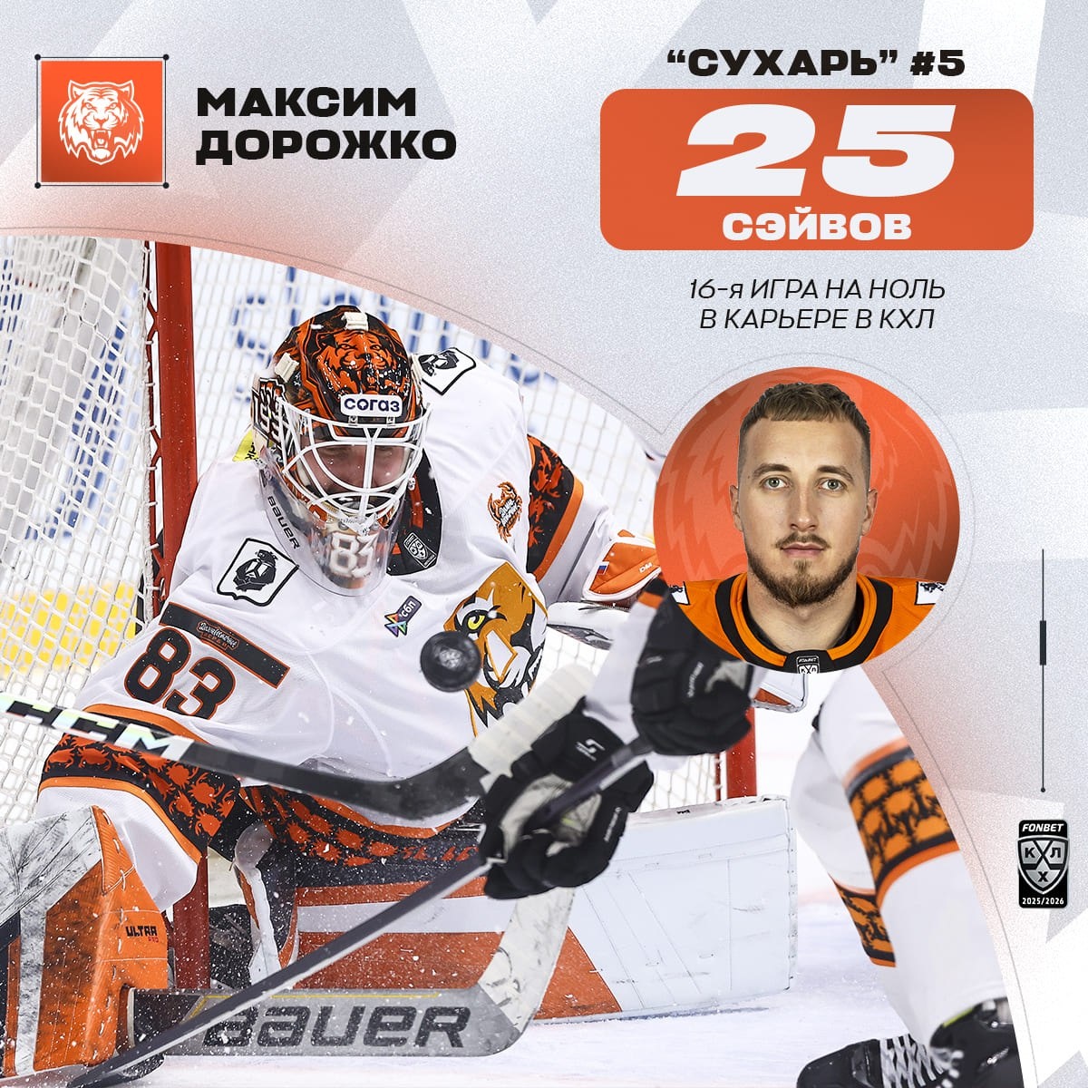 Только одно из шести #ДВдерби🦀 сезона завершилось на ноль — этот «сухарь» сегодня заработал Максим Дорожко 🐯!