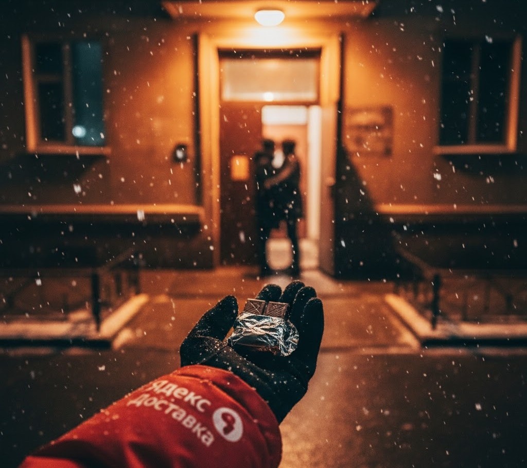 Есть дни, которые просто отрабатываешь. А есть дни, которые потом вспоминаешь. 23 февраля у курьеров обычно обычный день. Носки, подарки, еда, всё как всегда. Я вышел вечером, уже темнело. Снег такой мелкий, липкий, когда вроде не холодно, но промокаешь. Настроение спокойное, обычная смена. Прилетает заказ. Небольшой пакет, обычный адрес, ничего особенного. Подъезжаю к дому, старый подъезд, лампочка еле горит.
