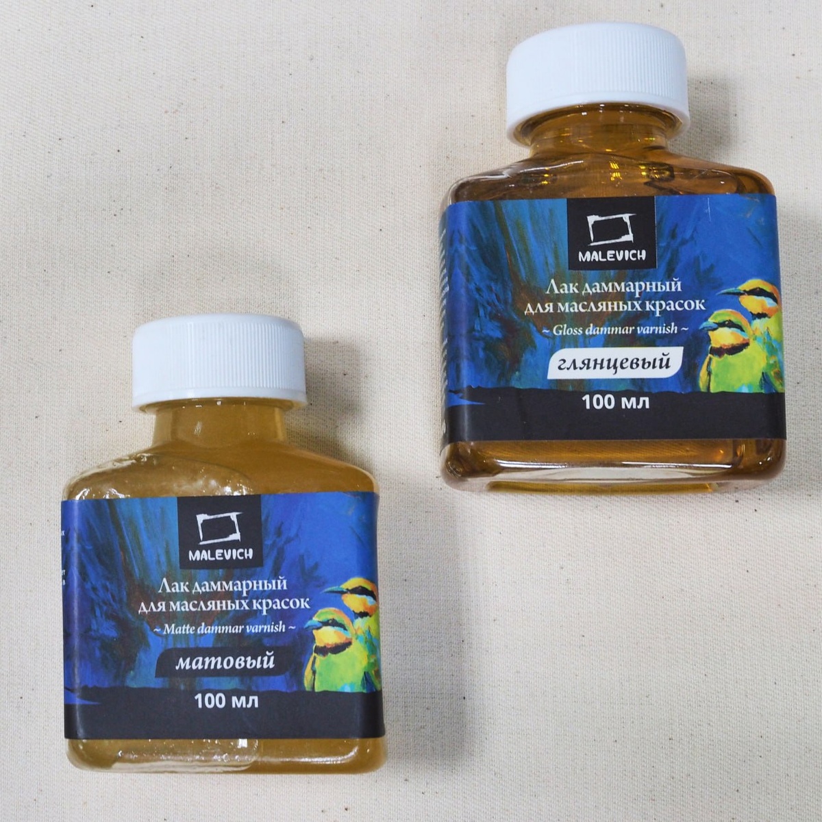 Применяется в живописи после высыхания слоя красок — в качестве покрывного лака для масляных красок. 🛡️ Нужен чтобы защищать живопись от влаги и пыли, а бонусом придаёт необходимую текстуру: матовость либо глянец. благородный блеск Благодаря лаку краски становятся насыщеннее, ярче и «глубже». ❗️ОБРАТИТЕ ВНИМАНИЕ: смола даммары со временем может желтеть, поэтому не рекомендуется для покрытия работ, выполненных в холодных тонах. На фото — дамарные лаки Малевич (глянцевый и матовый). Найти можно в розничных магазинах и на сайте 🐒