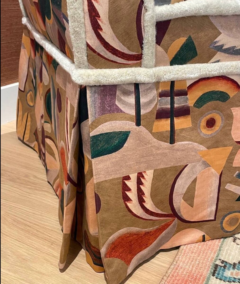 Вот еще пример пушистой бахромы на кресле с Парижской выставки. И кстати сказать, мебель перестала стоять у стенки, её можно рассматривать с любой стороны.
