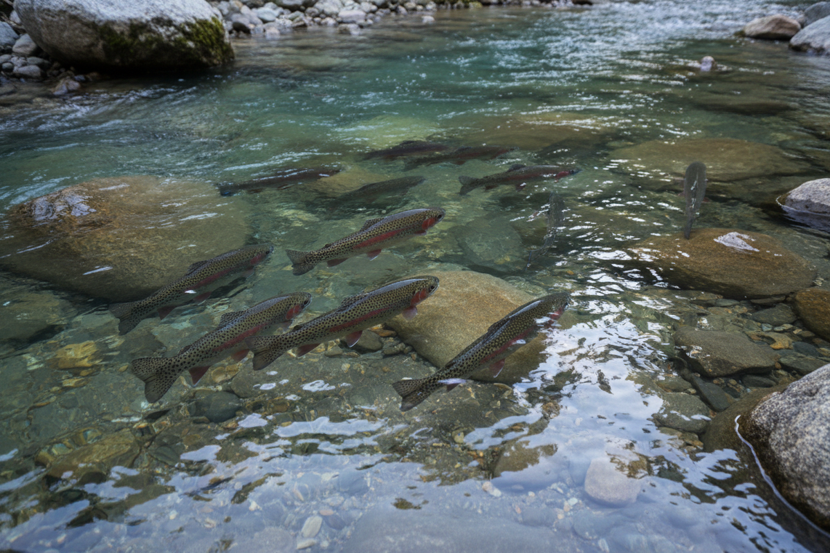Форель — холодноводная рыба. Идеальная температура для неё — +14...+18°C. Как только вода прогревается до +22°C, у форели начинается стресс. При +25°C она погибает в течение нескольких часов.