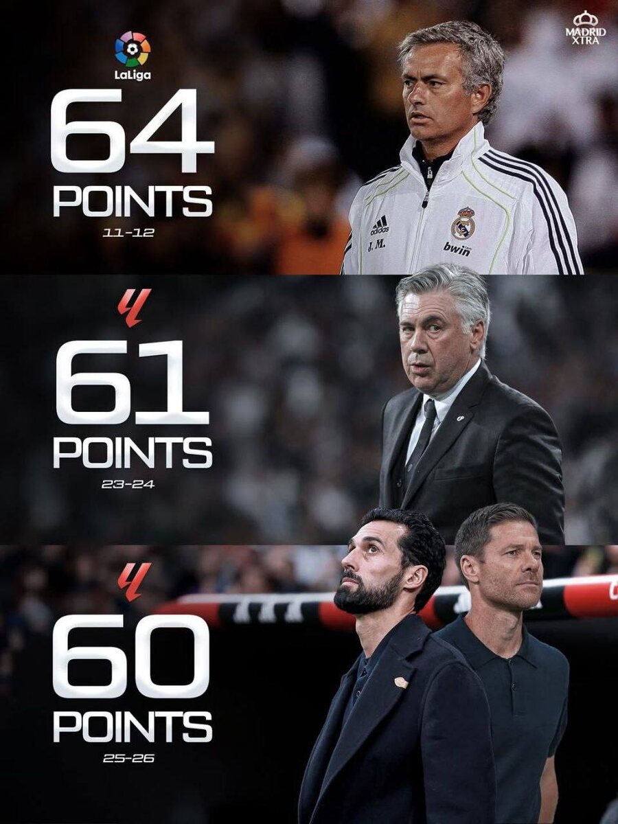 🔝«Реал» после 24 туров набрал 60 очков — это третий лучший результат в истории клуба на этой дистанции!