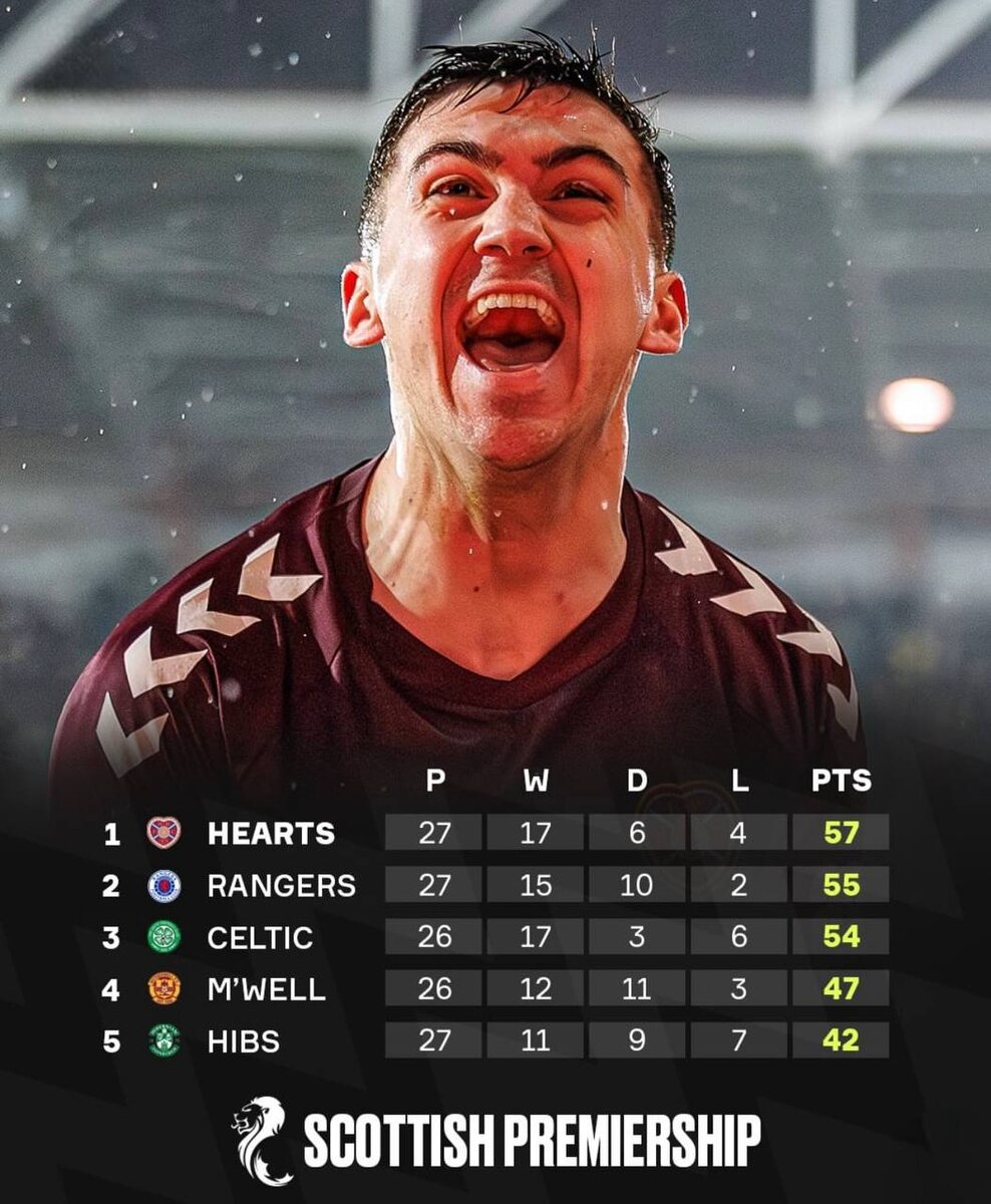 В начале января мы писали о преимуществе Хартса, которое они благополучно растеряли. На прошедших выходных так вообще Рейнджерс победил Хартс 4:2, и Селтик свой матч выиграл Впереди еще очная встреча Селтика с Рейнджерс, в общем интересно у шотландцев в этом сезоне 🔥🔥 ➡️ Подписаться на ФутХайп