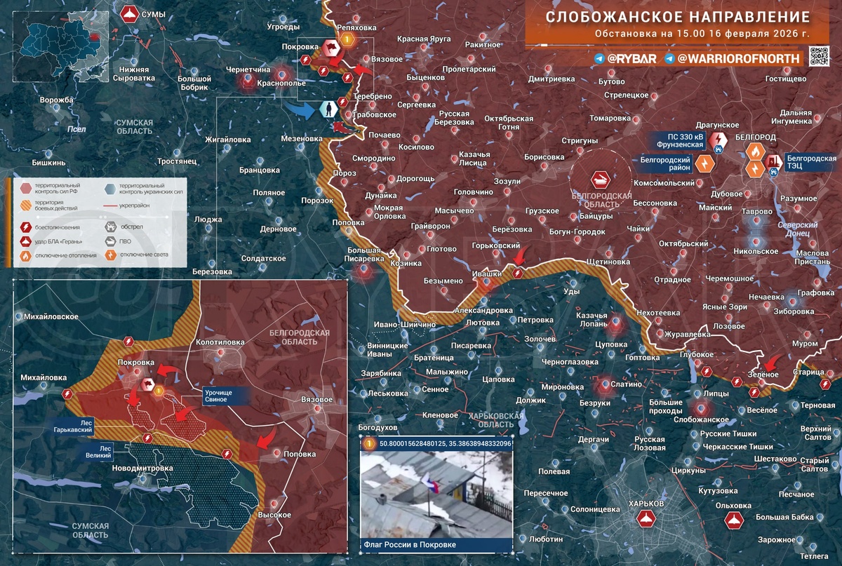 На Слобожанском направлении российские подразделения освободили населённый пункт Покровка. Закрепиться на окраинах им удалось несколькими днями ранее, а теперь официально объявлено об освобождении. 🔸Мотострелки 34-й гвардейской горной бригады сломили сопротивление формирований 122-й бригады ТРО и 253-го штурмового полка «Арей», заняв населенный пункт. В результате российские силы приблизились к Михайловке и сократили дистанцию до населённого пункта Краснополье до трех с небольшим километров. Но, не исключены контратаки, поскольку резервы у противника на направлении есть. 🔸При этом ключевое значение имеет не столько сама Покровка, сколько прилегающие лесные массивы. Под контроль ВС РФ перешёл лес Гарькавский и урочище Свиное и несколько оврагов. Занятие этих лесных массивов позволит ВС РФ накапливать личный состав для атак как в сторону соседней Новодмитровки, так и к самому Краснополью. 🔸Однако «рывков» к Краснополью ждать вряд ли стоит. Учитывая его размеры и важность для обороны В