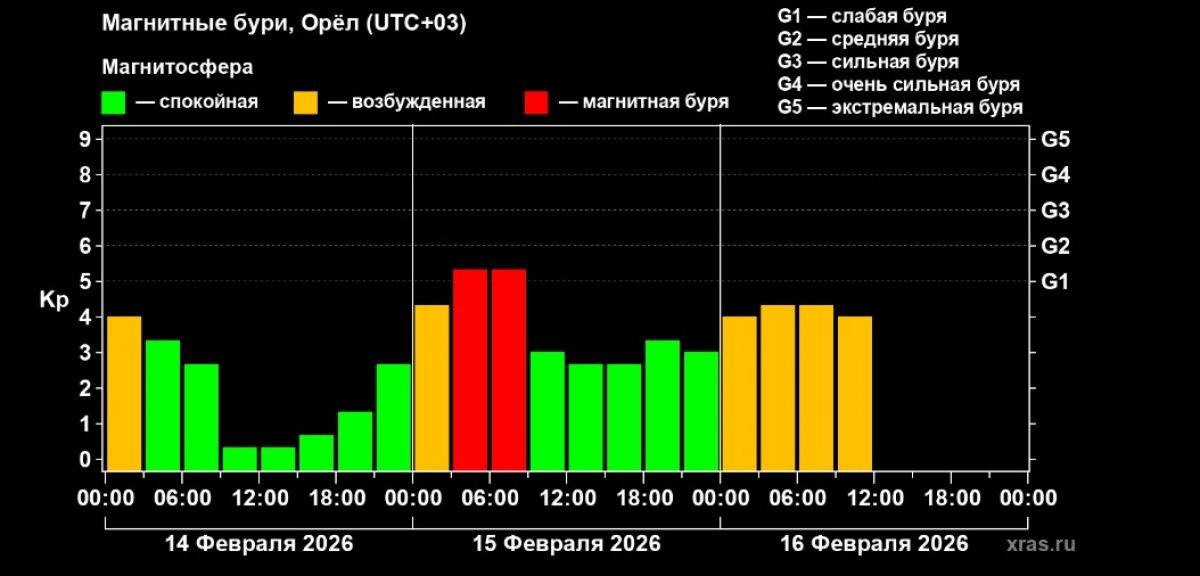 На Земле началась магнитная буря, вызванная крупной корональной дырой на Солнце. Она пришла на сутки раньше прогнозов, но серьёзных последствий не ожидается. Как сообщили в лаборатории солнечной астрономии Института космических исследований и Института солнечно-земной физики РАН, пик бури пришёлся на 5 утра 15 февраля. Уровень составил G1.3 по пятибалльной шкале — это слабая буря, близкая к средней. Причина — крупная корональная дыра, которая оказалась напротив Земли. Учёные ожидали начала возмущений примерно на сутки позже, но прогноз немного сбился. Общая продолжительность геомагнитных колебаний может составить до двух суток. Выход на уровень G2 (средняя буря) маловероятен. Такие явления могут влиять на управление космическими аппаратами, а в высоких широтах — вызывать полярные сияния. Этой ночью их интенсивность в пике достигала 8,6 балла из 10. Это уже вторая магнитная буря в феврале. Первая, слабого уровня, была зарегистрирована 5 февраля. При этом в целом февраль-2026 выглядит сп