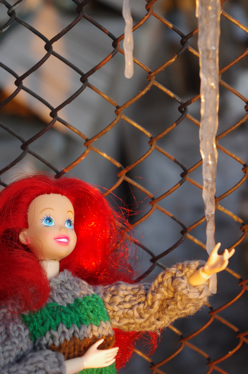 тела светлееЗдравия! Мои хорошие! Вот и весна уже чувствуется в воздухе, поют громче птицы. А в полдень ярко сияет солнце, сжирая снежные барханы и образуются первые проталины. Моя русалочка Ариелька-Мэри, радостно обнаружила сосульку))) Сейчас она на китайском шарнирном теле, эксперименты не заканчиваются. У тела якоря нет а просто бумажка согнутая несколько раз, и маленькое отверстие головушки, отлично встало. Только на фото головушка повернулась из-за тяжелых густых волос и виден просвет у шеи.. А на втором фото не видно)) скинтон еще у тела светлее Давно я еще улыбашек не фотографировала, соскучилась...Вот они мои Мия и Мила Ой...вот у нас гололед даже куклы падают.. Ну нечего, все живы. Встала отряхнулась Мила, смотрит а там такой закат красивый!!! Сестра приехала недавно, зимняя русалочка, на родном теле пока... Фотосессию ей с ракушками сделаю а потом уж наверное и на шарнирное пересажу. Тут Мия смотрит в объектив фотоаппарата)) Не ожидала, что её пойдет бирюзовая шубк