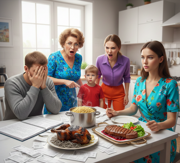 Свекровь перевела взгляд на сына. На его серую, неглаженую рубашку. На пустые макароны. На меня, сидевшую с прямой спиной.