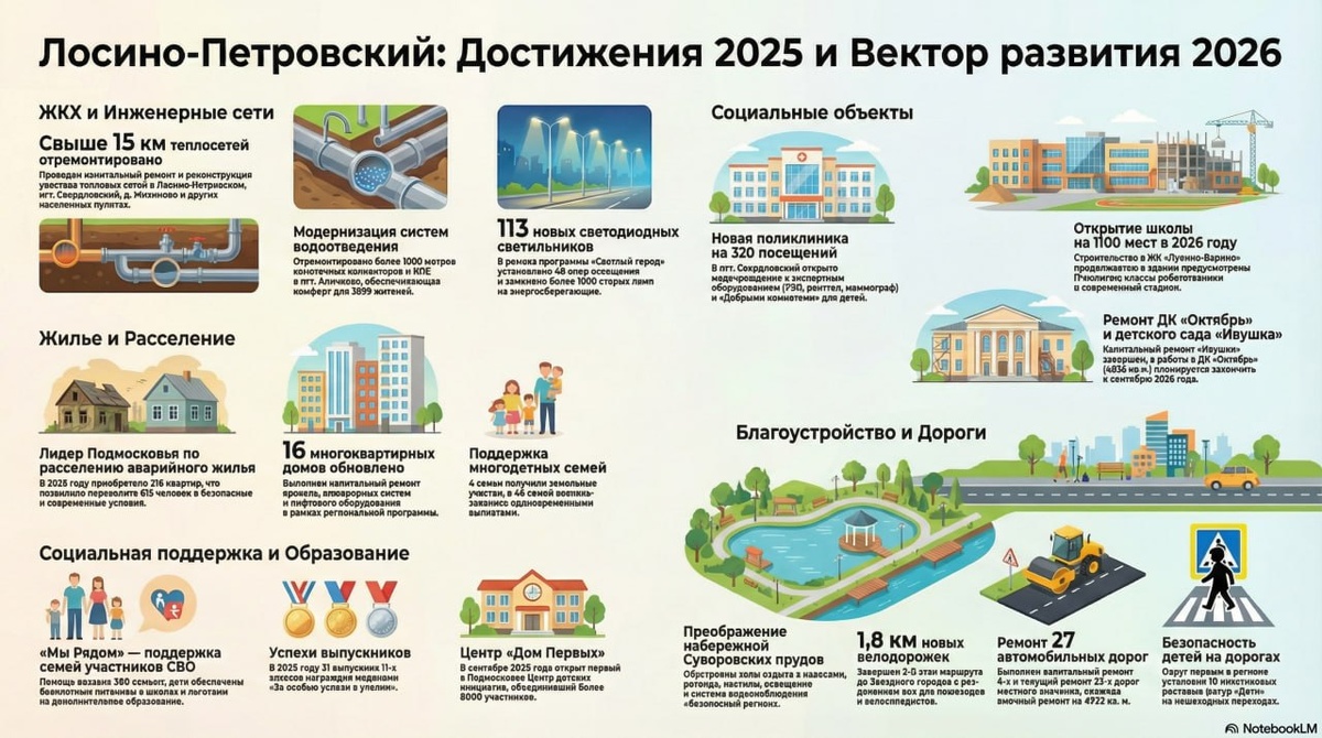 о. Лосино-Петровского подвела итоги 2025 и анонсировала планы на 2026 год Если не хотите тратить время на статью, то специально вас мы подготовили инфографику по данному материалу ⭐️ LPG