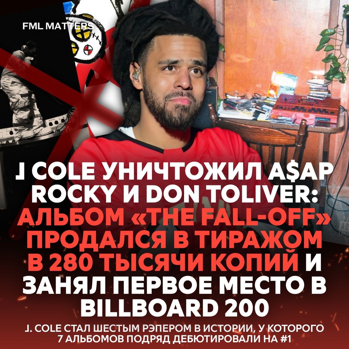‼️ J. COLE УНИЧТОЖИЛ A$AP ROCKY И DON TOLIVER! Рэпер ворвался в игру с альбомом «THE FALL- OFF», продав 280 тысяч копий за первую неделю и моментально захватив вершину Billboard 200. Для сравнения: Don Toliver с «OCTANE» остановился на 162 тысячах. А A$AP Rocky, которого фанаты ждали 8 лет, и вовсе пролетел мимо — его «DON'T BE DUMB» едва наскрёб 123 тысячи. Это самый крупный старт для хип-хопа с прошлого марта, когда Playboi Carti дропнул «MUSIC» с 298K. Монстр? ❤️🔥/👎 💀 FML MATTERS