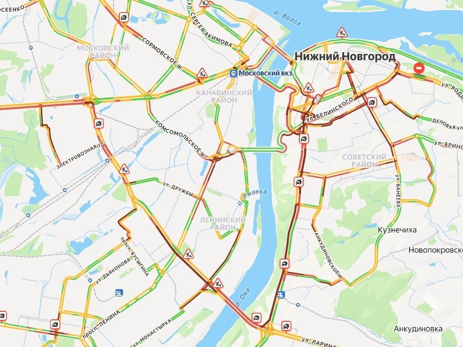 ΠΠ΅Π»ΠΈΠ½ΡΠΊΠΎΠ³ΠΎ, ΠΠ°Π½Π΅Π΅Π²Π° ΠΈ ΠΡΠ°ΡΡΠΊΠΎΠΉ. ΠΠ»ΠΎΡΠ½ΠΎ ΡΠΊΠΎΠ²Π°Π½ ΠΈ ΡΠ΅Π½ΡΡ - ΠΎΡ ΠΏΠ»ΠΎΡΠ°Π΄ΠΈ ΠΠΈΠ½ΠΈΠ½Π° ΠΈ ΠΠΎΠΆΠ°ΡΡΠΊΠΎΠ³ΠΎ Π΄ΠΎ ΠΠΎΠ»ΡΡΠΎΠΉ ΠΠ΅ΡΠ΅ΡΡΠΊΠΎΠΉ ΠΈ ΠΠ°ΡΠ²Π°ΡΡΠΊΠΎΠΉ. ΠΠ΅ΡΠ΅ΠΏΡΠ°Π²Π° ΡΠ΅ΡΠ΅Π· ΠΠΊΡ ΡΠ°ΠΊΠΆΠ΅ Π·Π°ΡΡΡΠ΄Π½Π΅Π½Π°. ΠΠ΅ ΠΌΠ΅Π½Π΅Π΅ ΡΠ»ΠΎΠΆΠ½Π°Ρ ΡΠΈΡΡΠ°ΡΠΈΡ ΡΠ»ΠΎΠΆΠΈΠ»Π°ΡΡ ΠΈ Π² Π½ΠΈΠΆΠ½Π΅ΠΉ ΡΠ°ΡΡΠΈ. Π’ΡΠ°Π΄ΠΈΡΠΈΠΎΠ½Π½ΠΎ Β«Π²ΡΡΠ°Π»ΠΈΒ» ΠΠΎΡΠΊΠΎΠ²ΡΠΊΠΎΠ΅ ΠΈ Π‘ΠΎΡΠΌΠΎΠ²ΡΠΊΠΎΠ΅ ΡΠΎΡΡΠ΅, Π° ΡΠ°ΠΊΠΆΠ΅ ΠΏΠΎΠ΄ΡΡΡΠΏΡ ΠΊ ΠΠΎΡΠΊΠΎΠ²ΡΠΊΠΎΠΌΡ Π²ΠΎΠΊΠ·Π°Π»Ρ. ΠΠ²ΡΠΎΠΌΠΎΠ±ΠΈΠ»ΠΈΡΡΡ ΡΡΠΎΡΡ Π² ΠΎΡΠ΅ΡΠ΅Π΄ΡΡ