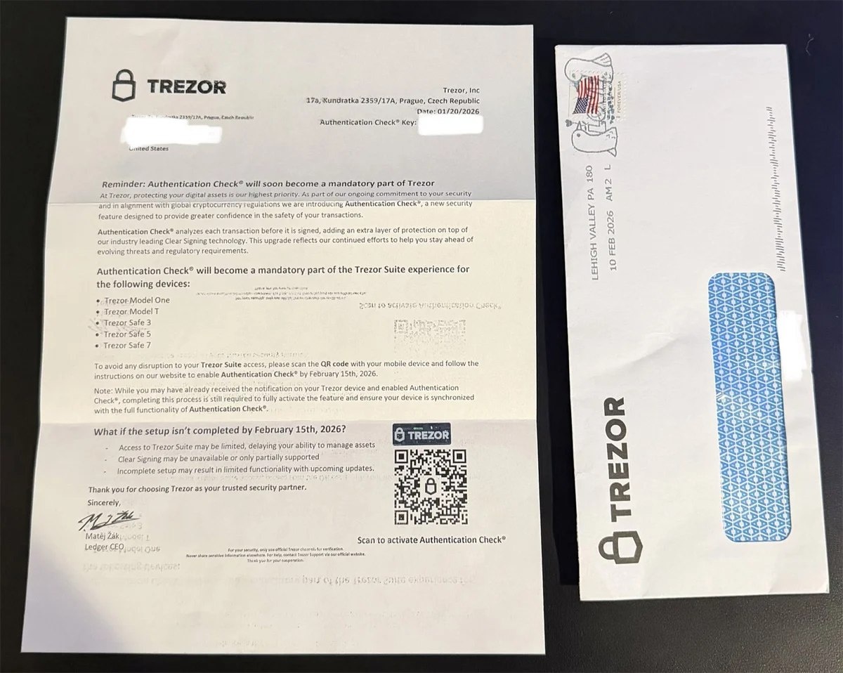 ⚡ Мошенники начали рассылать бумажные письма владельцам криптокошельков Trezor и Ledger