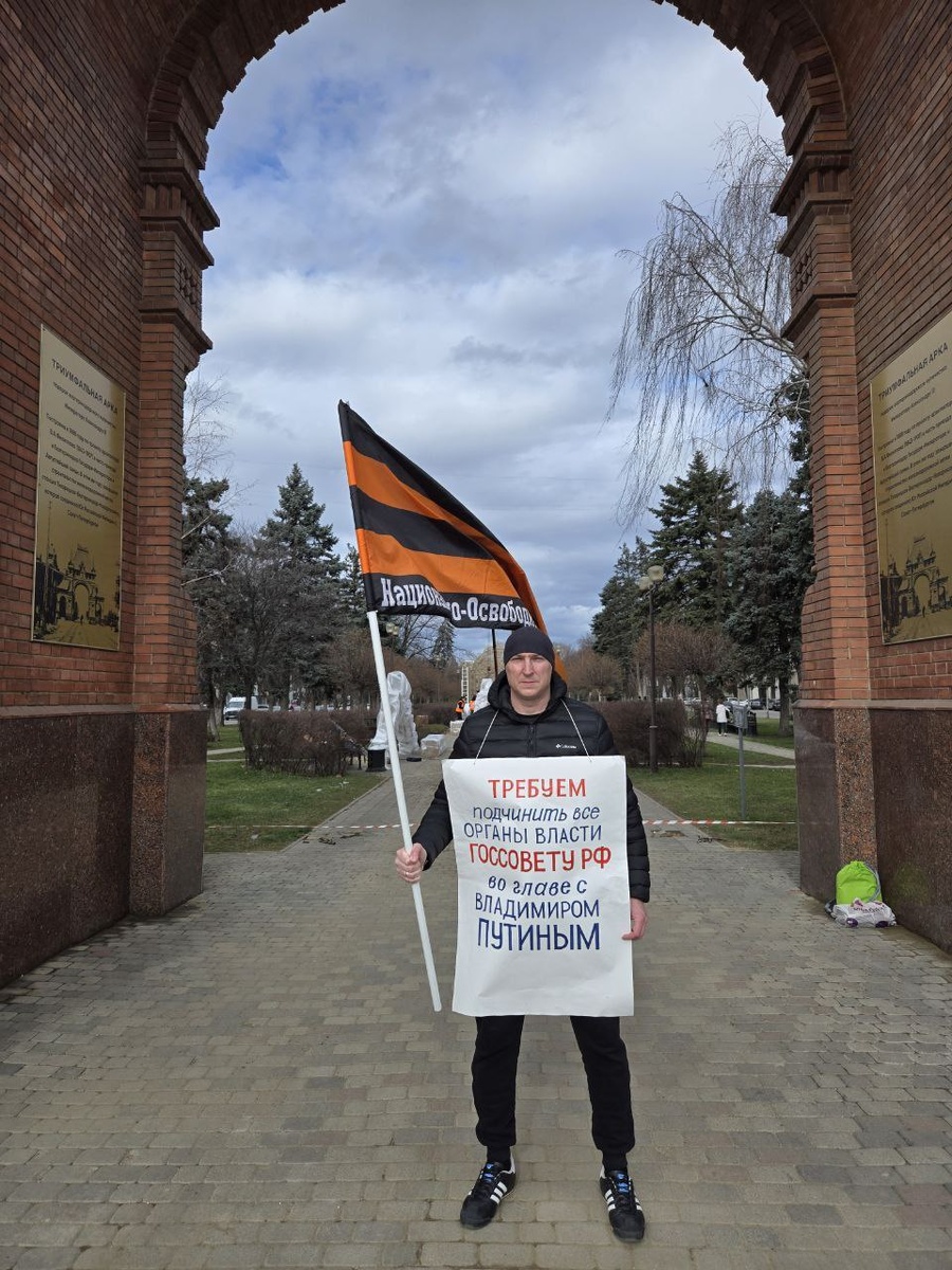 ! "...Для такой страны, как Россия, просто существование нашей страны без суверенитета невозможно, ее просто не будет". В.В. ПУТИН 14.02.2026 активисты Национально-Освободительного движения провели серию одиночных пикетов в центре г. Краснодара, на пересечении улиц Красная и Бабушкина у Александровской арки. Для полного восстановления суверенитета России необходимо: 1. Отменить самостоятельный статус органов власти, подчинить их Госсовету РФ во главе с Президентом РФ 2. Отменить верховенство международных норм и установить приоритет российского законодательства 3. Учредить Ставку Верховного Главнокомандующего ВС РФ и наделить полномочиями 4. Учредить Госбанк РФ Для осуществления этих реформ нужно изменение Конституции и решение суда об отмене госпереворота 1991 года, вернуть границы Отечества. Принять участие в обращениях в органы власти с этими требованиями можно на сайтах: ✔️ Горбсуд.рф ✔️ Gorbsud.ru ✔️ Путин-наш-лидер.рф