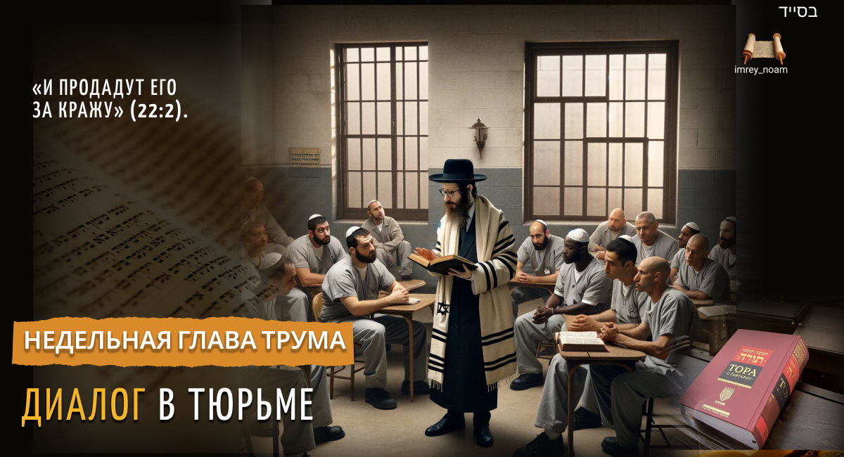 Я встал, чтобы выйти. Он тоже поднялся проводить меня и сказал: «Я поискал в источниках, в иудаизме нет наказания в виде тюрьмы, только побиение палками и смертная казнь». Он словно хотел сказать: мы продвинулись, отменили телесные наказания, а преступники «платят долг обществу», отбывая наказание в тюрьме. Я снова сел. Гмара говорит (Шаббат, 30б), что в отношении Торы «отвечай глупцу по глупости его, чтоб не казался себе мудрым» (Мишлей, 26:5). – Человек украл, а денег заплатить у него нет.