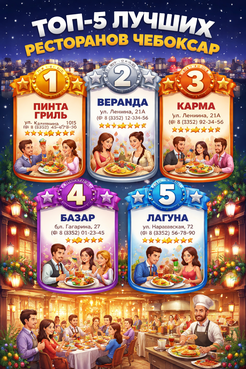 Выбирайте не по вывеске, а по отзывам. И пусть ваш ужин в Чебоксарах будет вкусным.