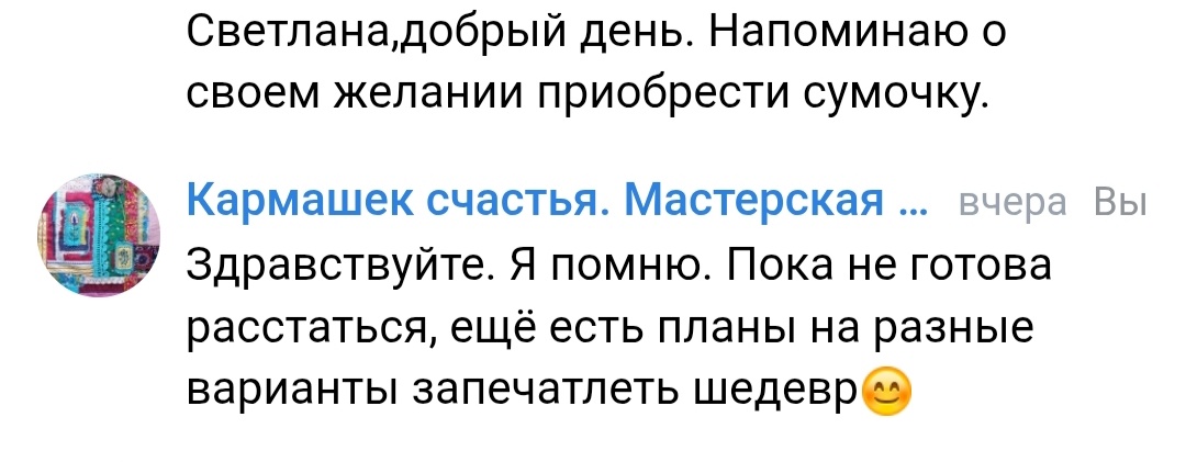 Автора можно найти и ВКонтакте, там же есть группа «Кармашек счастья» с товарами и историей подлиннее, чем в Дзене.