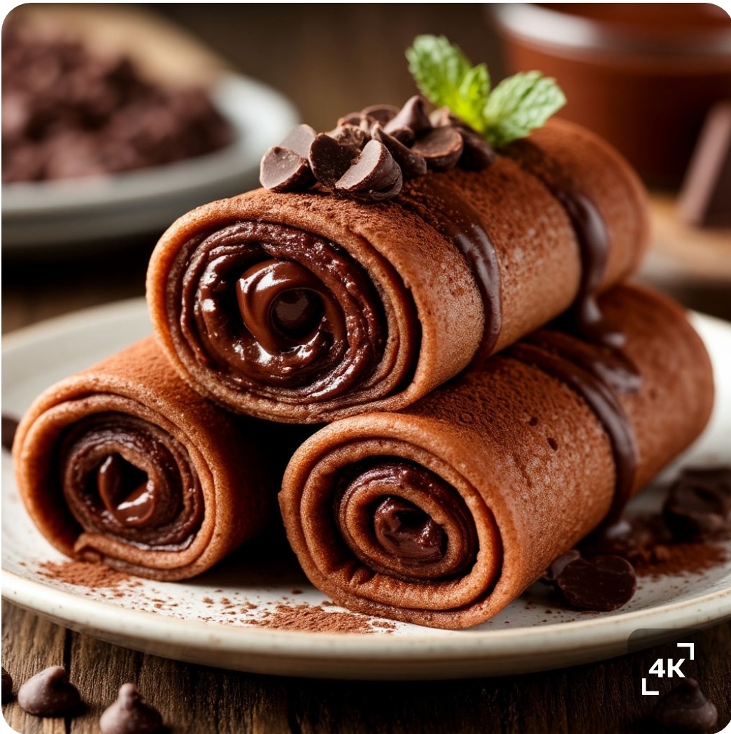 3. **Начинка**. На каждый блин намажьте щедрый слой шоколадной пасты. Если вы любите добавлять текстуру, посыпьте сверху немного измельчённых орехов. Аккуратно сверните блин в трубочку или сложите его пополам — ваш блинчик готов!