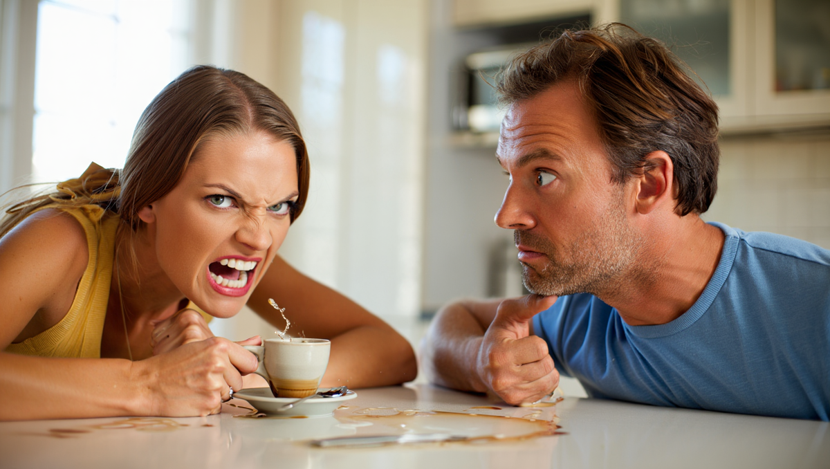 Виктор замер с куском хлеба на полпути ко рту. Посмотрел на жену, потом на расплёсканный кофе, потом снова на жену.