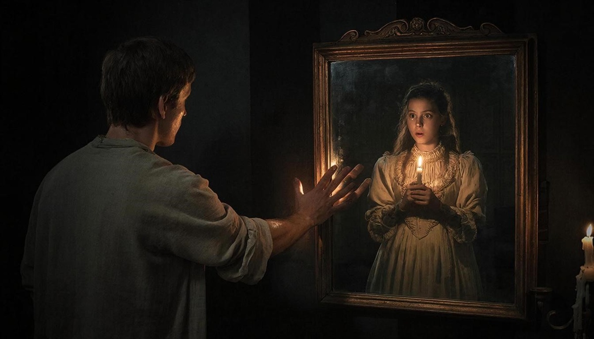 Вместо полутёмной, пыльной комнаты зеркало показывало залитую мягким золотистым светом гостиную. Это была та же комната, но другая — живая, дышащая. Свечи в канделябрах, дорогие обои, блеск начищенного паркета. За изящным секретером сидела женщина.