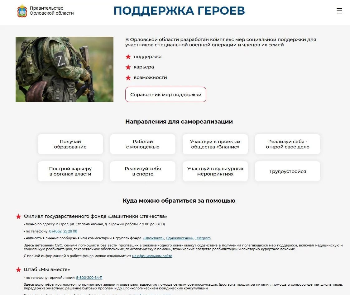 13 участников кадровой программы подключились к проверке сайта «Поддержка героев». Это специализированный портал, где бойцы и их семьи смогут узнавать о льготах, выплатах и вакансиях. Эксперты оценят, насколько сайт удобен, понятна ли навигация и вся ли необходимая информация есть в открытом доступе. Замечания участников СВО помогут доработать портал, чтобы сделать его по-настоящему полезным инструментом. Работу курирует Департамент соцзащиты Орловской области в рамках проекта «Государство для людей».