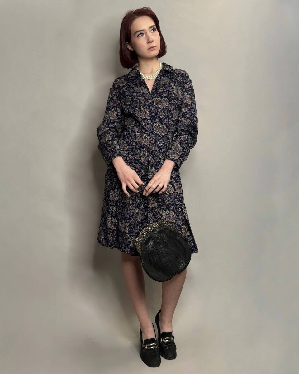 ✨ Мягкий силуэт, флористический принт — всё, за что мы любим моду семидесятых. В ту эпоху ценили комфорт, природные оттенки и женственность без излишнего пафоса. После строгих 60-х стиль стал более свободным и «живым». Мы дополнили платье лаконичной обувью и винтажной сумкой — получился цельный ретро-образ, который выглядит актуально и сегодня. Цена платья - 4.000р, размер 44-46