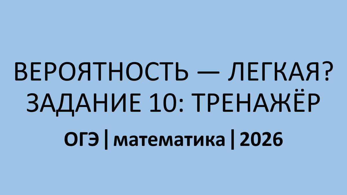 Одну формулу выучил. А применять научился? Проверь себя — в тренажёре собраны все 8 типов, которые могут попасться на экзамене. Решишь все — заберёшь ещё один балл. Тип 1. У бабушки 30 чашек: 6 с красными цветами, остальные с синими. Бабушка наливает чай в случайно выбранную чашку. Найдите вероятность того, что это будет чашка с синими цветами. Тип 2. В фирме такси в данный момент свободно 20 машин: 6 чёрных, 7 жёлтая и 7 зелёных. По вызову выехала одна из машин, случайно оказавшаяся ближе всего к заказчику. Найдите вероятность того, что к нему приедет чёрное такси. Тип 3. В лыжных гонках участвуют 5 спортсменов из России, 1 спортсмен из Швеции и 4 спортсмена из Норвегии. Порядок, в котором спортсмены стартуют, определяется жребием. Найдите вероятность того, что первым будет стартовать спортсмен из Швеции. Тип 4. Родительский комитет закупил 20 пазлов для подарков детям в связи с окончанием учебного года, из них 13 с машинами и 7 с видами городов. Подарки распределяются случайным образ