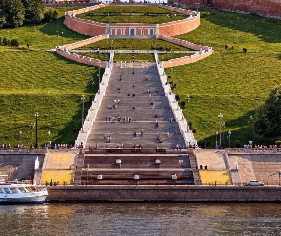 Сегодня Чкаловская лестница — это не только архитектурный памятник, но и популярное место прогулок, городских мероприятий и фотосессий. Особенно красиво здесь вечером, когда включается подсветка, и лестница превращается в светящуюся линию, спускающуюся к реке.