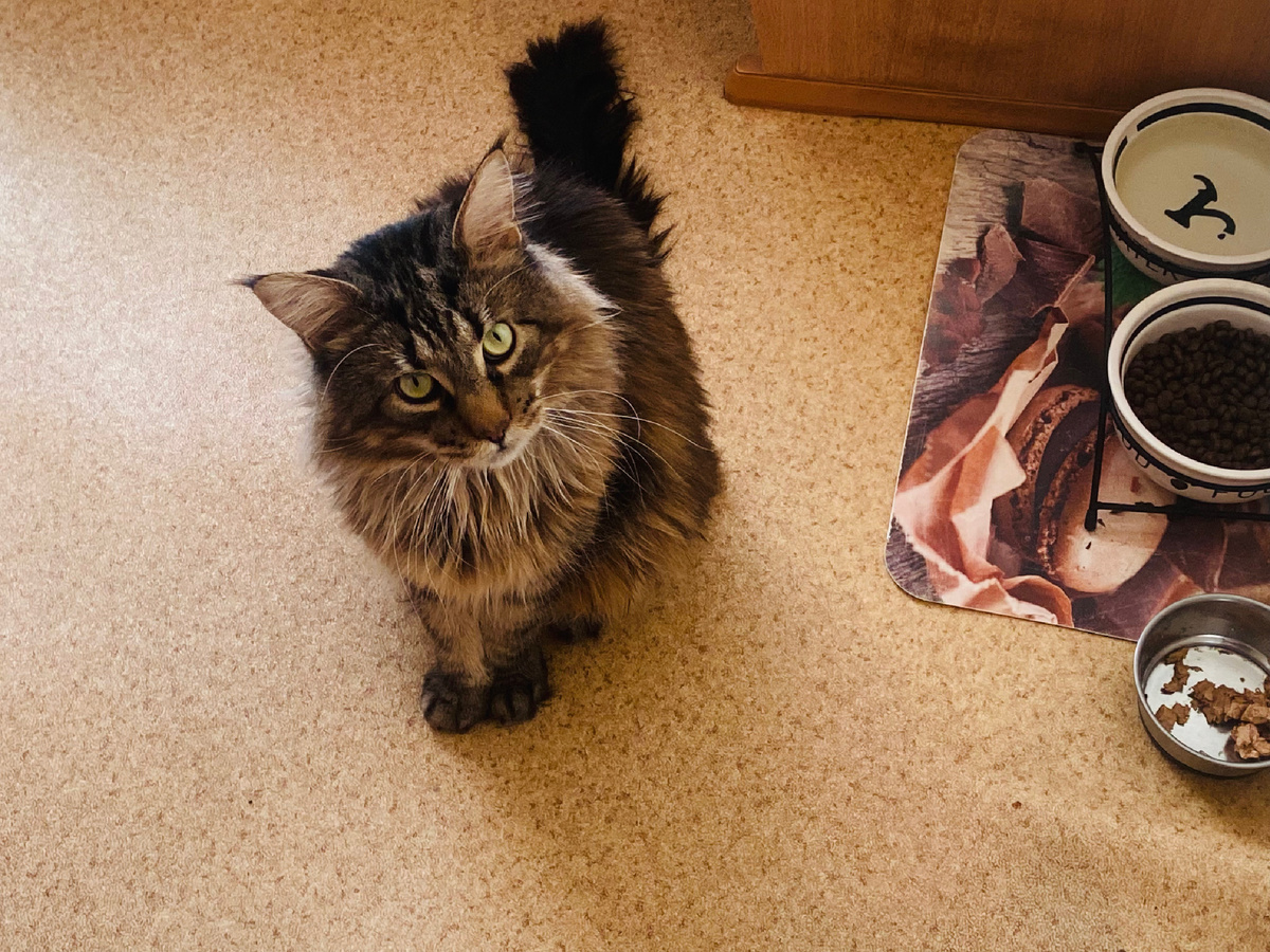 На входе в кухню столкнулась с удивленным взглядом Гаврило: «Хозяйка, ты что тут делаешь?». Не успел съесть только что полученную порцию вкусняшек. Не его сегодня день, схитрить не получится и вторую порцию заполучить)