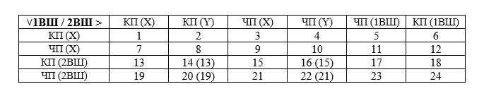 В игре «Городская Мафия» (как, впрочем, и в её спортивном варианте), часто при вскрытии шерифом одного из игроков другой игрок также может вскрыться шерифом. При этом в зависимости от сделанных проверок возможно 24 ситуации, хотя некоторые из них симметричные. Введем обозначения: «КП» - красная проверка от «шерифа», «ЧП» - чёрная проверка от «шерифа», «1ВШ» - игрок, вскрывшийся шерифом первым, «2ВШ» - игрок, вскрывшийся шерифом вторым, «Х» - игрок в стороне от 1ВШ, «Y» - игрок в стороне от 2ВШ.