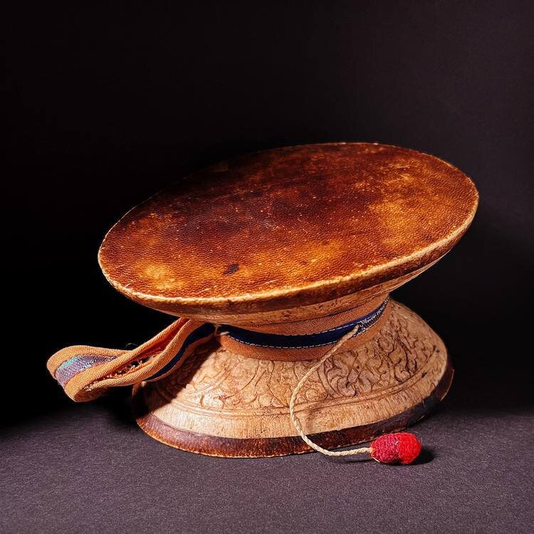 Исторически данный вид барабана изготавливался из соединенных вместе в районе макушки двух верхушек («крышек») человеческих черепов. Традиционно в Индии для изготовления такого барабана использовались черепа 15-16 летних мальчика и девочки, принадлежавших к касте брахманов. В Тибете, где кастовая система отсутствовала, использовались череп мальчика 16 лет и девочки 12 лет. А для изготовления звуковых мембран использовалась шкура козы (обе мембраны обязательно должны были быть выполнены из шкуры одного животного) или змеиной кожи. Позднее эти маленькие барабаны стали также вытачивать из дерева драгоценных пород: акации или сандала. #АлтарныйВопрос