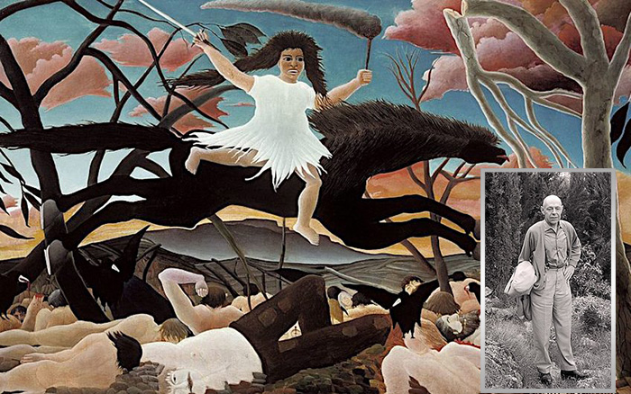 Анри Руссо - французский художник-самоучка. Полноценным художником он стал в 49 лет. Его работы отличались любопытными композициями и дилетантским методом, вызывавшим восхищение таких художников, как Василий Кандинский и Пабло Пикассо, но вызывавшим презрение и насмешки современных критиков. Коллеги видели в его творчестве неповторимую красоту простоты. В его стиле не было правильных пропорций, а скорее плоская двухмерная перспектива и использование необычных цветов.