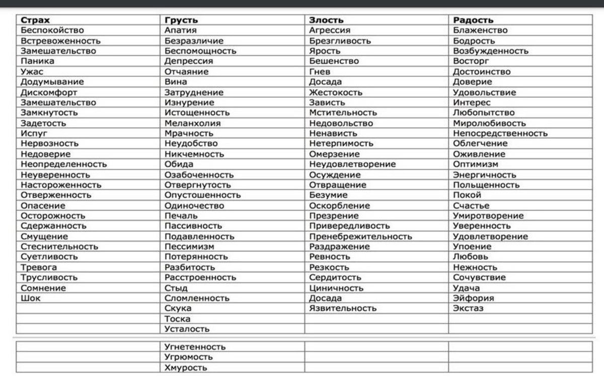 Таблица эмоций