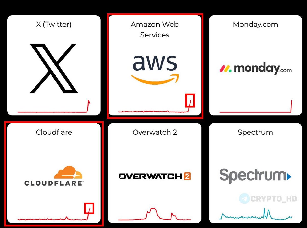 🙁 Downdetector: Люди сообщают о сбоях у Amazon Web Services (AWS) и Cloudflare