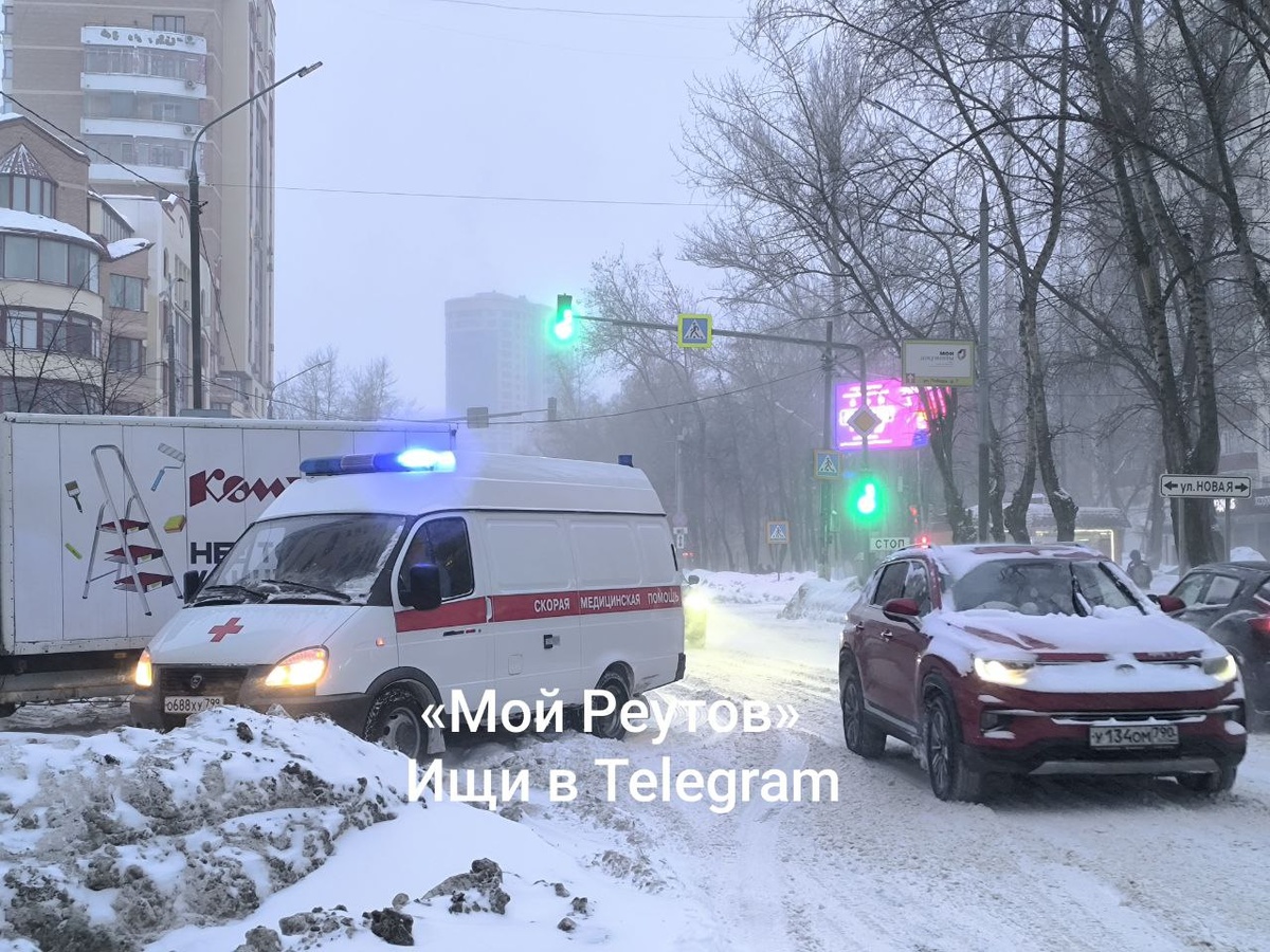 ‼️ В Реутове на улице Ленина в снегу застряла скорая помощь. Браво, коммунальщики!