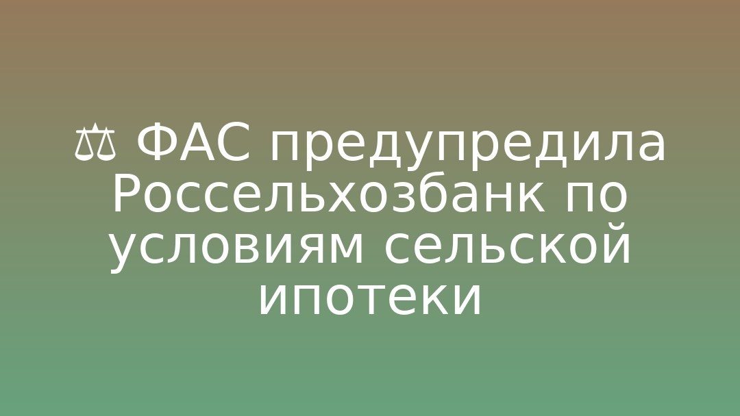 ФАС выдала Россельхозбанку предупреждение из‑за условия, по которому подрядную организацию при сельской ипотеке можно выбрать только из