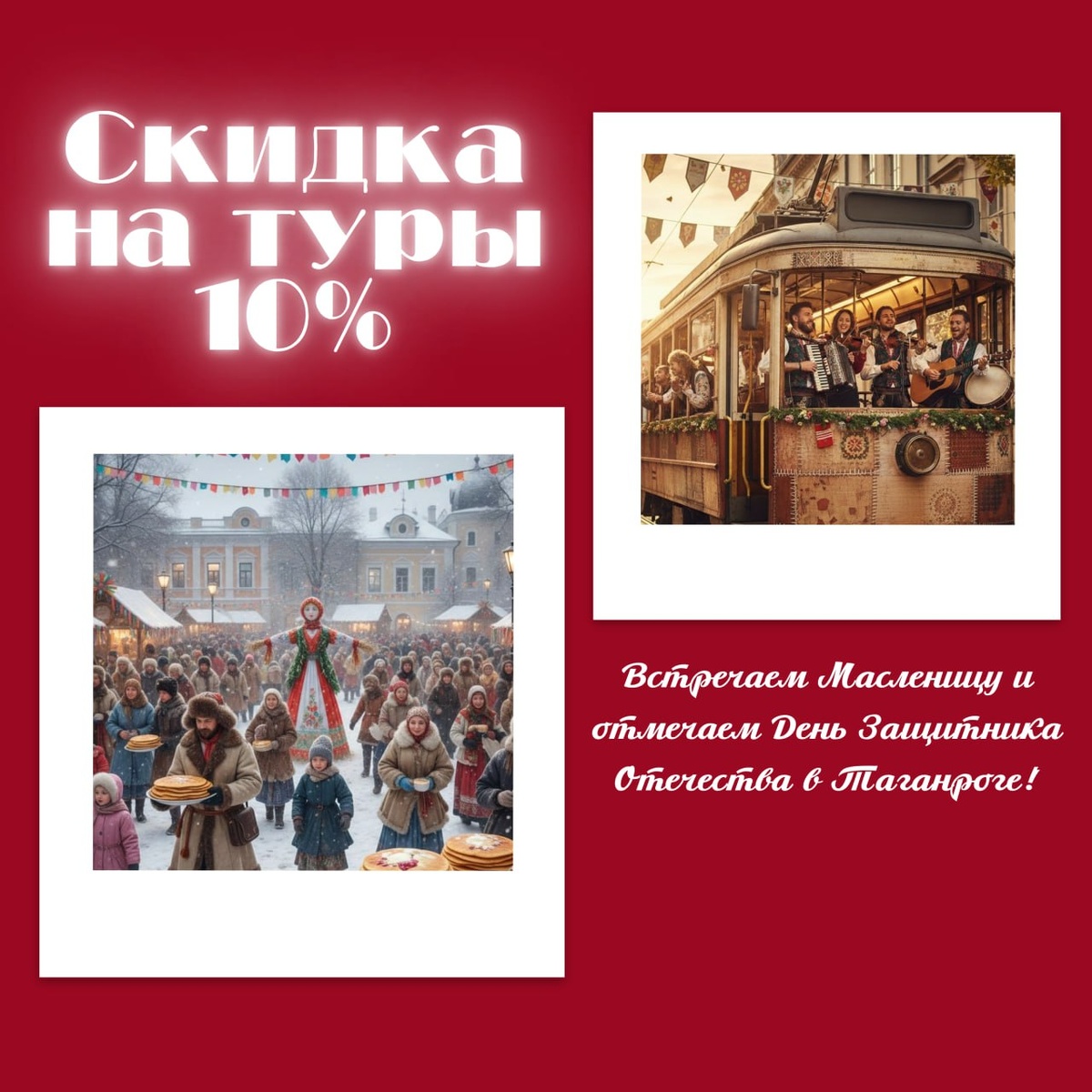 ! 🤩🤩🤩🤩 Объявляем 🤩🤩🤩🤩 скидки на 🤩🤩🤩🤩 туры! 🤩Таганрог и казаки 22 февраля ➡️ ПРОГРАММА ТУТ ⬅️ 🤩Музыкальный трамвай с фолк-группой "Забава" 22 февраля ➡️ ПРОГРАММА ТУТ ⬅️ 🤩 В Таганрог на Масленицу на электропоезде из Ростова-на-Дону! 21 февраля ➡️ ПРОГРАММА ТУТ ⬅️ 🤩Трамвайный разгуляй 22 февраля ➡️ ПРОГРАММА ТУТ⬅️ ✉️ Пиши нам и погнали! WhatsApp/Телеграм: 8-951-528-23-91 😆 Мы в MAX