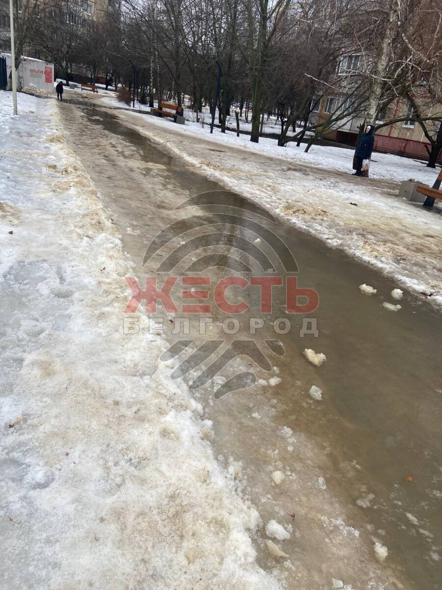 На пути образовались большие лужи, талый снег и наледь, из-за чего пройти можно только по воде и скользкому покрытию. Горожане просят коммунальные службы обратить внимание на проблему, особенно с учётом того, что этим маршрутом ежедневно пользуются дети. ❕ Жесть Белгород - подписаться