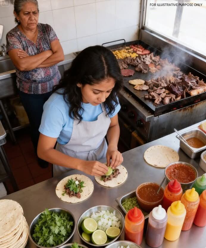 Через месяц место сияло. Оранжевые стены согревали всю улицу. Старый прилавок, отполированный до блеска. Столы аккуратно расставлены, красно-белые пластиковые скатерти. Музыка разливалась на тротуар. Я продавала тако, газировку, ароматизированную воду — и смеялась с покупателями весь день.
