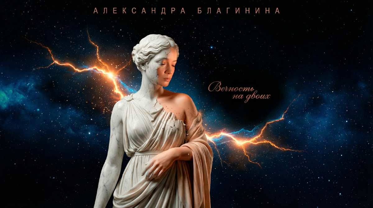 Автор-исполнительница Александра Благинина представляет сингл «Вечность на двоих» — глубокую лирическую балладу, в которой личная история преображается в универсальный миф о творении и пробуждении через любовь. Текст песни начинается с мощного образа творения: «Ты создавал портрет и образ мой, как мастер, отсекая камень... Я стала как в «Пигмалион», и для себя совсем чужою». Героиня осознает себя одновременно и творцом, и творением, «оживающей статуей» в руках возлюбленного. Это история пробуждения через любовь, где два человека становятся друг для друга художниками, меняющими собственную реальность. Атмосферу поддерживает богатая, но деликатная аранжировка: акустическая гитара задает искренний тон, электронные гитары создают пространство мечты, а саксофон ведет свою лирическую партию как голос новой, проснувшейся души — страстный, свободный и осознанный, пронзающий пространство и время. «Эта песня — о моменте, когда ты понимаешь, что был не собой, а лишь своей тенью, — говорит Алексан