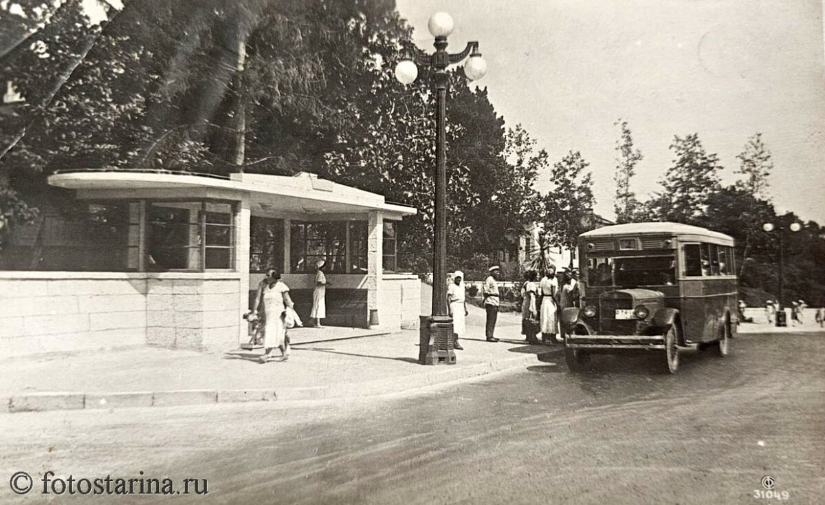 Сочи 1938 год. Остановка автобусов Калифорния.