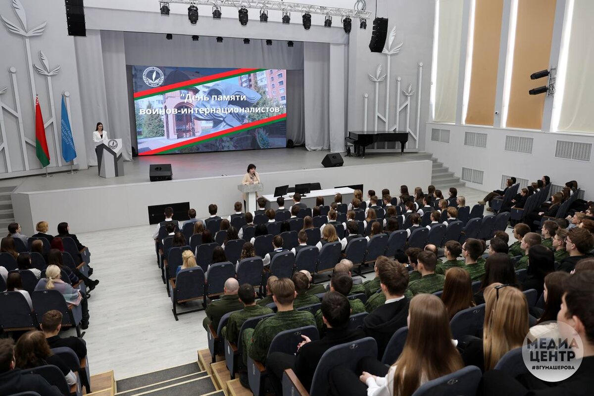 ребята, которые проходят там обучение, чтобы вместе с ректором Валентиной Богатырёвой по сложившейся доброй традиции посмотреть фильм «Офицеры». Мероприятие было приурочено ко Дню памяти воинов-интернационалистов и 37-й годовщине вывода советских войск из Афганистана, а почетным гостем стал воин-интернационалист Сергей Машеро, который сегодня продолжает трудиться на военной кафедре нашего университета. 🎤Открыло встречу выступление солистки Народного коллектива «Студия эстрадной песни «Шанс» Анны Стоян, которая исполнила песню «Колокола». После этого к присутствующим обратилась Валентина Васильевна, которая отметила, что совместные кинопросмотры в эти даты уже стали доброй традицией и поводом отдать дань уважения и памяти солдатам и офицерам, которые выполняли свой интернациональный долг и защищали честь СССР. 🤝Валентина Богатырёва поздравила с годовщиной вывода советских войск из Афганистана Сергея Аркадьевича и отметила, что кинолента «Офицеры», которая сегодня предлагается к прос