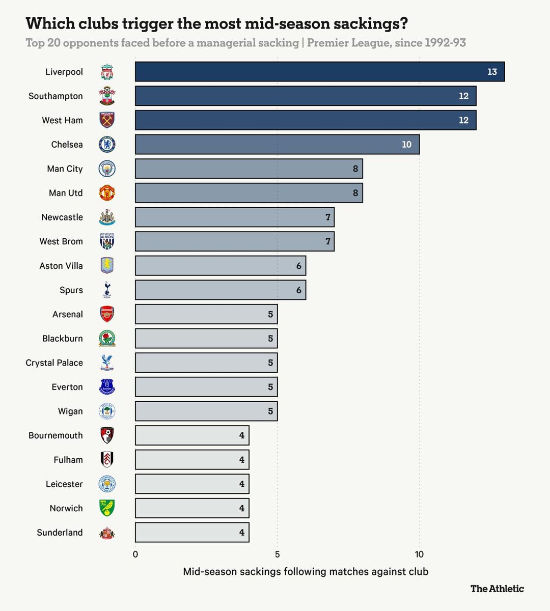 После матчей с какими командами чаще всего увольняли тренеров во время сезона Премьер-Лиги 📊