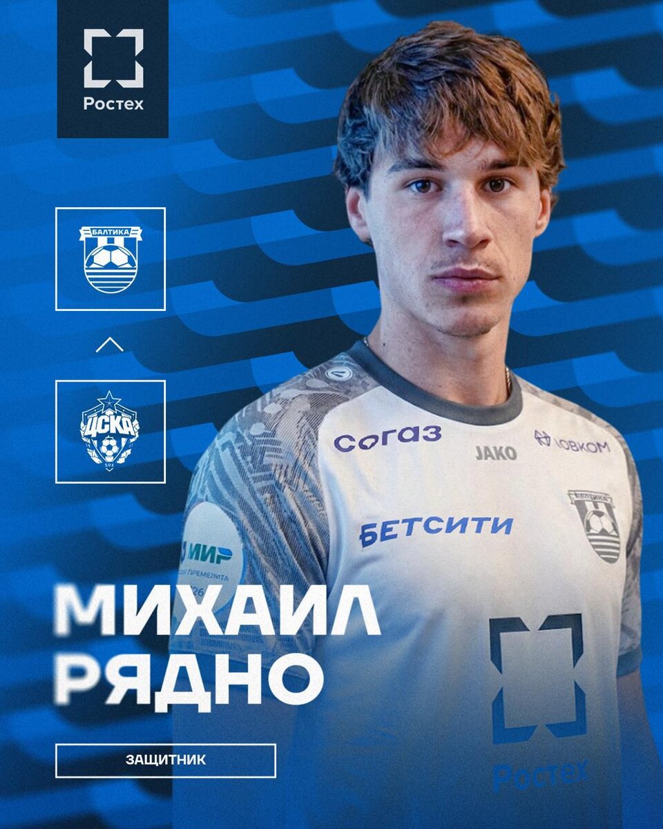 👏 Между футбольными клубами «Балтика» и ЦСКА достигнута договорённость о трансфере защитника Михаила Рядно. Молодой футболист подписал контракт с нашей командой до 31 декабря 2029 года! Миша — воспитанник армейцев. Первый профессиональный контракт с родным клубом он подписал в июле 2023 года. Тогда же Рядно дебютировал за ЦСКА в игре за Суперкубок России, установив рекорд как самый молодой участник турнира. В конце месяца защитник провёл свои первые минуты на высшем уровне, выйдя почти на час в игре с «Уралом». Игровая карьера: 🐴 23/24, ЦСКА: МФЛ (шесть матчей, один гол, три ассиста), РПЛ (пять матчей, по одному голу и ассисту), Кубок России (шесть матчей); ⚽️ 24/25, «Родина»: Первая лига (27 матчей, два ассиста); 🐴 25/26, ЦСКА: Кубок России (один матч). Трофеи: 🐴 23/24 — чемпион МФЛ (ЦСКА); 🐴 25/26 — победитель Суперкубка России (ЦСКА). 🇷🇺 Миша — действующий игрок молодёжной сборной России! Приветствуем Михаила в рядах Балтийцев и желаем продолжения своего футбольного раз