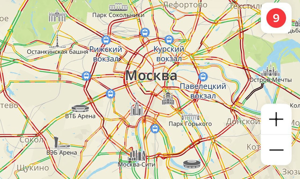 🚗🚕🚙 Пробки в Москве достигли 9-ти баллов.