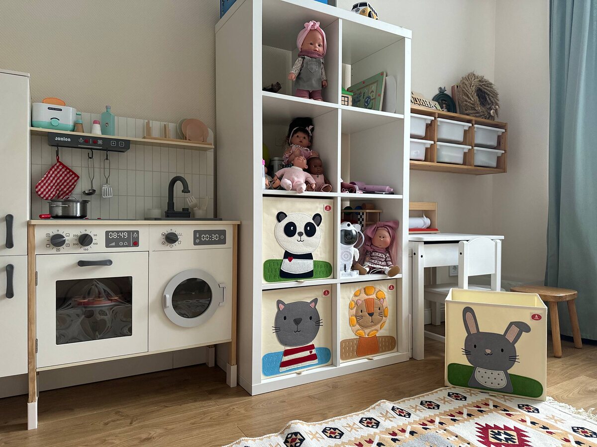 📦 🟠🟤⚪️🔵🟠🟤⚪️🔵🟠 Кажется, нам захотелось весны раньше календаря 🤩 Детская была в спокойных бело-оливково-бежевых тонах… красиво, стильно… и немного скучно. Дети единогласно проголосовали за «побольше цвета», а я только за! Так у нас появились ящики для хранения от Abumba с забавными зверями. Теперь порядок в комнате охраняет целый зоопарк 🦁 Раньше у нас были потрясающие плетёные корзины. Но за пять лет активной детской жизни они героически «выполнили свой долг». Красиво - да. Практично - не очень. Решили сменить на что-то более выносливое. Эти ящики отлично встали в стандартный стеллаж (размер коробки 32,5×32,5, у меня стеллаж IКЕА Каллакс). 🟢Внутри плотные стенки из пластика, тканевая обшивка. 🟢Есть петелька снизу, чтобы удобно доставать с полки. 🟢Аппликации из фетра надежно пришиты. Цена ниже чем у аналогов 👍 WB | ~ 1070₽