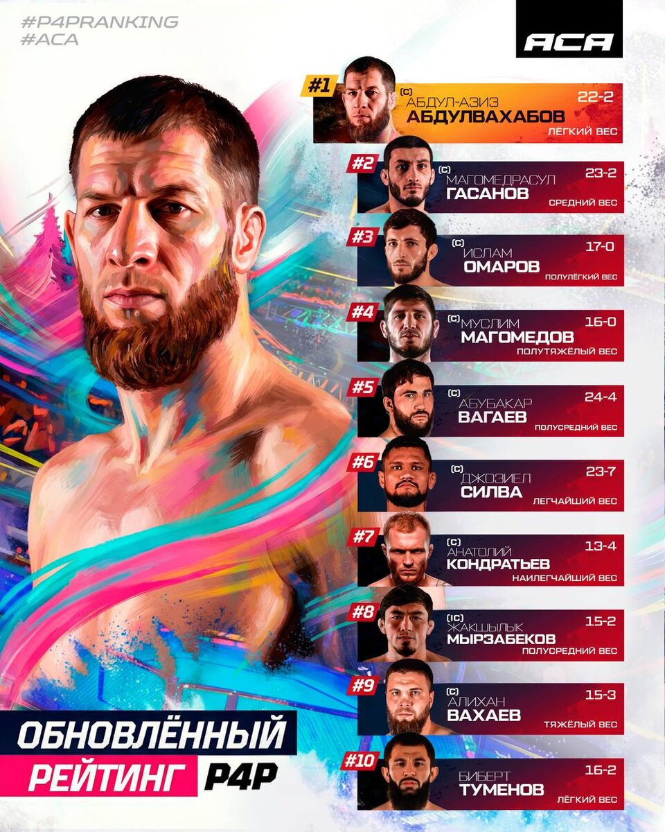 Обновлённый рейтинг лучших бойцов АСА вне зависимости от весовых категорий