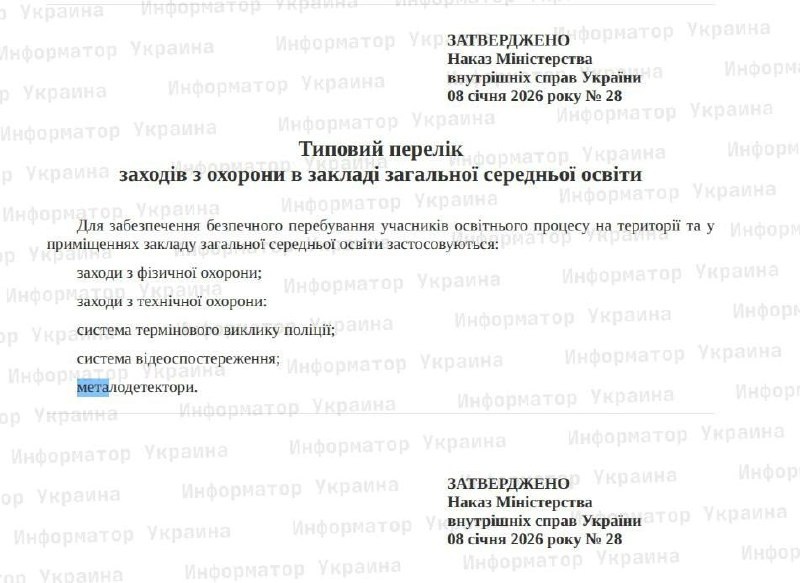 Проверка учеников металлодетекторами и камеры видеонаблюдения станут обязательными для каждой школы в Украине, — приказ МВД Рейха