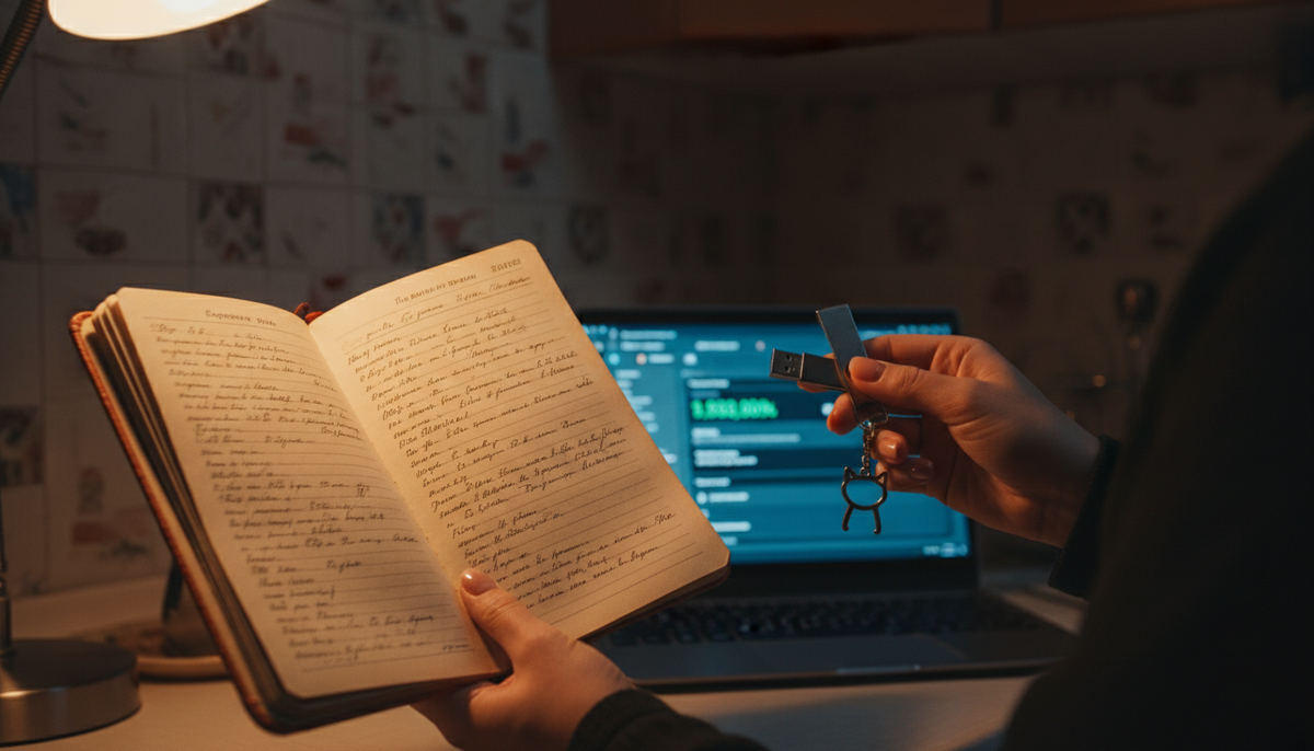 Я бросилась к коробке с электроникой. Там, среди старых зарядок и сломанных телефонов, лежала она — маленькая серебристая флешка с брелоком в виде кота.