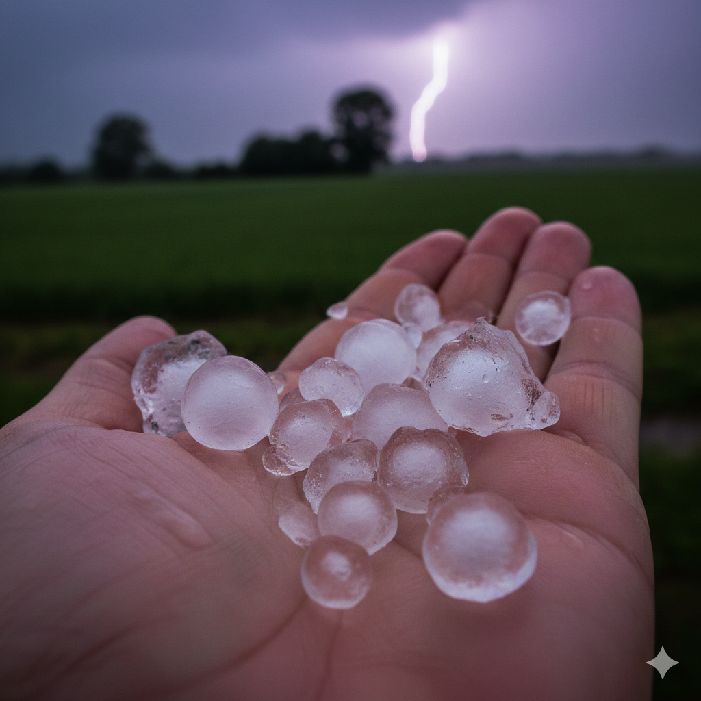 Самое прямое значение, которое мы учим в школе: hail — это град.