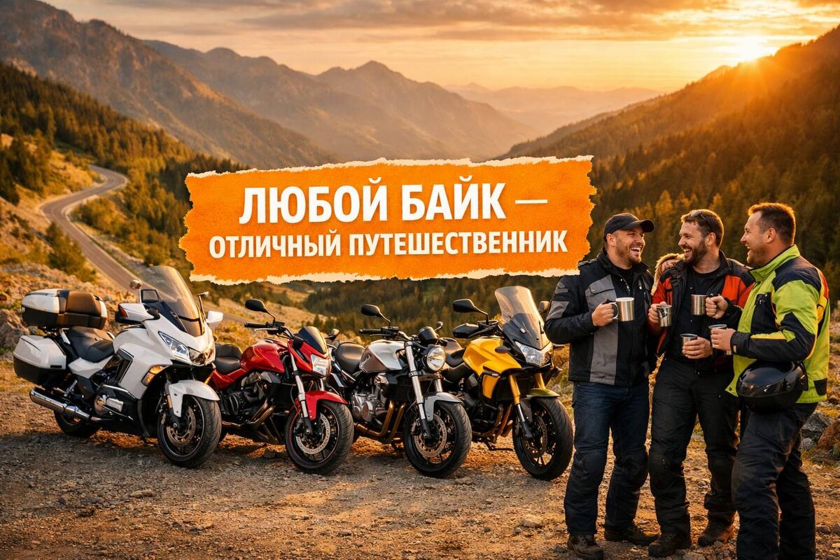? 🤔 Вы уверены, что ваш байк не подходит для путешествий? Спойлер: скорее всего, вы просто недооцениваете своего «коня». Февраль — время разобраться в технике перед сезоном 🏍️ Многие сейчас оценивают свой мотоцикл или выбирают новый, гадая: «А тот ли это класс для путешествий?». Давайте сегодня кратко разберем основные типы байков, их сильные стороны и нюансы. 🔍 Краткий гид по классам: 🚀 Люкс-туреры Плюсы: Максимальный комфорт, защита от ветра, продвинутая электроника и часто — увеличенный запас хода. Идеальны для долгих перегонов по асфальту. Обладают максимальным местом для багажа. Нюансы: Большой вес и габариты. На бездорожье чувствуют себя неуверенно из-за внушительной массы. 🛣️ Круизеры Плюсы: Расслабленная посадка, отличная тяга на низах, стиль. Созданы для размеренного движения по шоссе. Позволяют закрепить большой объем багажа. Нюансы: Низкий клиренс требует аккуратности на дорожных неровностях. 🏙️ Дорожные мотоциклы (Нейкеды / Городские) Плюсы: Легкость, маневренн